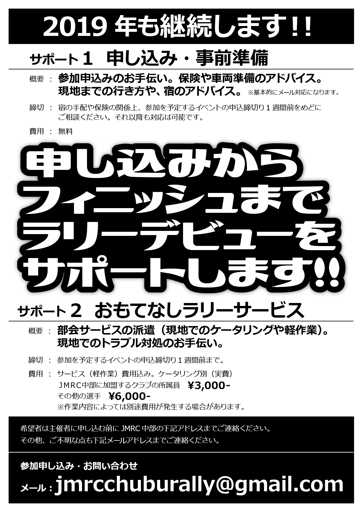 2019年も初心者向けラリーサポートを継続いたします。